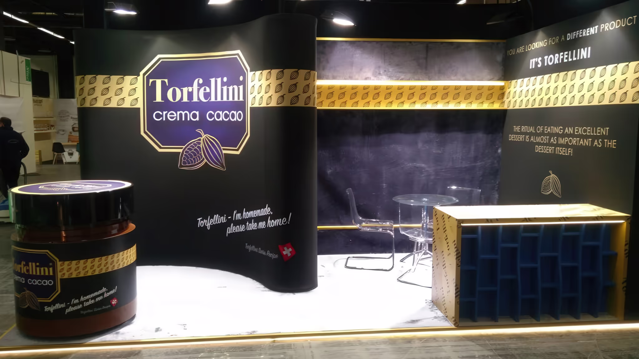 Цялостни решения за вашето перфектно представяне. Проектирахме и изградихме този впечатляващ щанд за "Torfellini", комбинирайки различни рекламни елементи за максимален ефект.